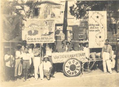 Diễu hành cổ động phong trào Bình dân học vụ năm 1946.