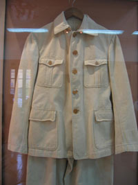 Nhớ thời kỳ về nước ở hang Cốc Bó, Bác thường vào các bản làng thǎm đồng bào, với bộ quần áo Chàm, chân đi giày vải, trông như một ông Ké thực thụ. Khi về Thủ đô Hà Nội đọc Tuyên ngôn độc lập, các đồng chí Trung ương may cho Bác bộ quần áo bằng vải Kaki. Thời kỳ kháng chiến, Bác có thêm bộ “quân phục màu xanh” Bác thường mặc lúc hành quân đi lẫn trong đoàn quân ra trận. Bác còn có thêm chiếc áo len cho ấm về mùa đông, chiếc áo khoác tránh mưa là chiến lợi phẩm của một đơn vị bộ đội tặng Bác. Trời nắng Bác thường dùng bộ “gụ Hà Đông”.