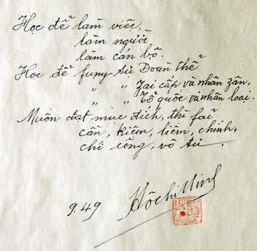 Người tóm tắt đạo đức cách mạng gồm năm điều: Nhân, nghĩa, trí, dũng, liêm trong đó Người nhấn mạnh: