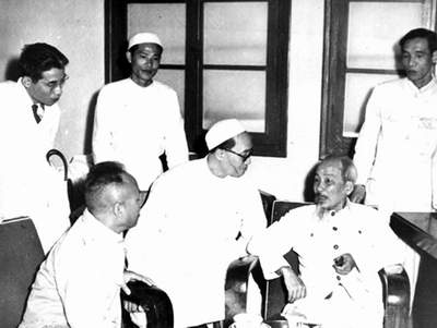 Bác Hồ nói chuyện thân mật với trí thức ngành y. Ảnh Internet.