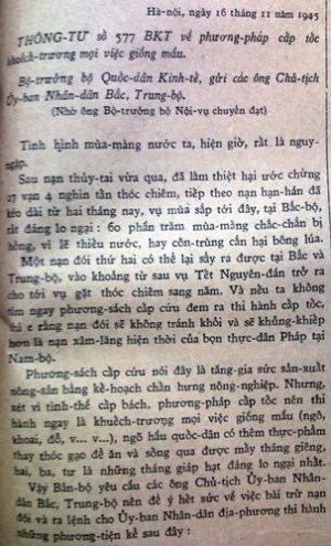 Nhân dịp đầu xuân 2011, chúng tôi xin giới thiệu bài tường thuật buổi làm việc của Hồ Chủ tịch về văn hóa với đại biểu đoàn văn hóa lâm thời Bắc Bộ đã được đăng trên Tạp chí Tri Tân số 205, tháng 9/1945, trang 4-5.